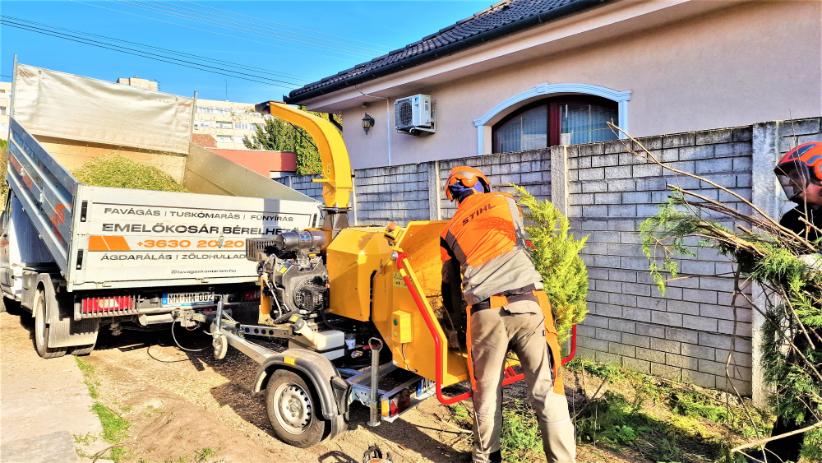 A fakivágás után 15-20 köbméter zöldhulladék is keletkezhet, amelynek az eltüntetésére a legegyszerűbb mód az ágdarálás. A darálást követően kb. 5 köbméter gallyból keletkezik 1 köbméter apríték, amely kiváló avartakaró lehet bokrok és fák alá, de akár begyújtóst is készíthetünk belőle a fűtési szezonban. Azonban, ha nem szükségszerű a darálás, akkor a billenő platós 3,5 tonnás teherautónknak köszönhetően darálás nélkül is könnyedén el tudjuk szállítani a zöldhulladékot.
